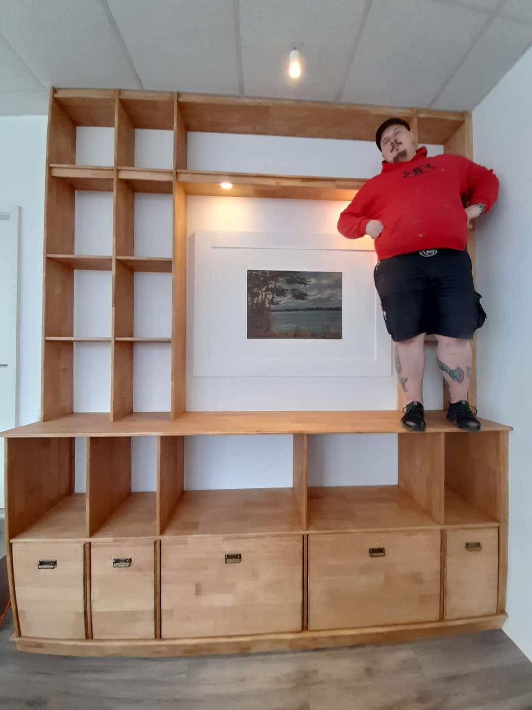 Dieses nicht sehr klassiche Einbaubuffet aus massiver Buche besticht in Funktionalität & verschmilzt mit dem Raum.